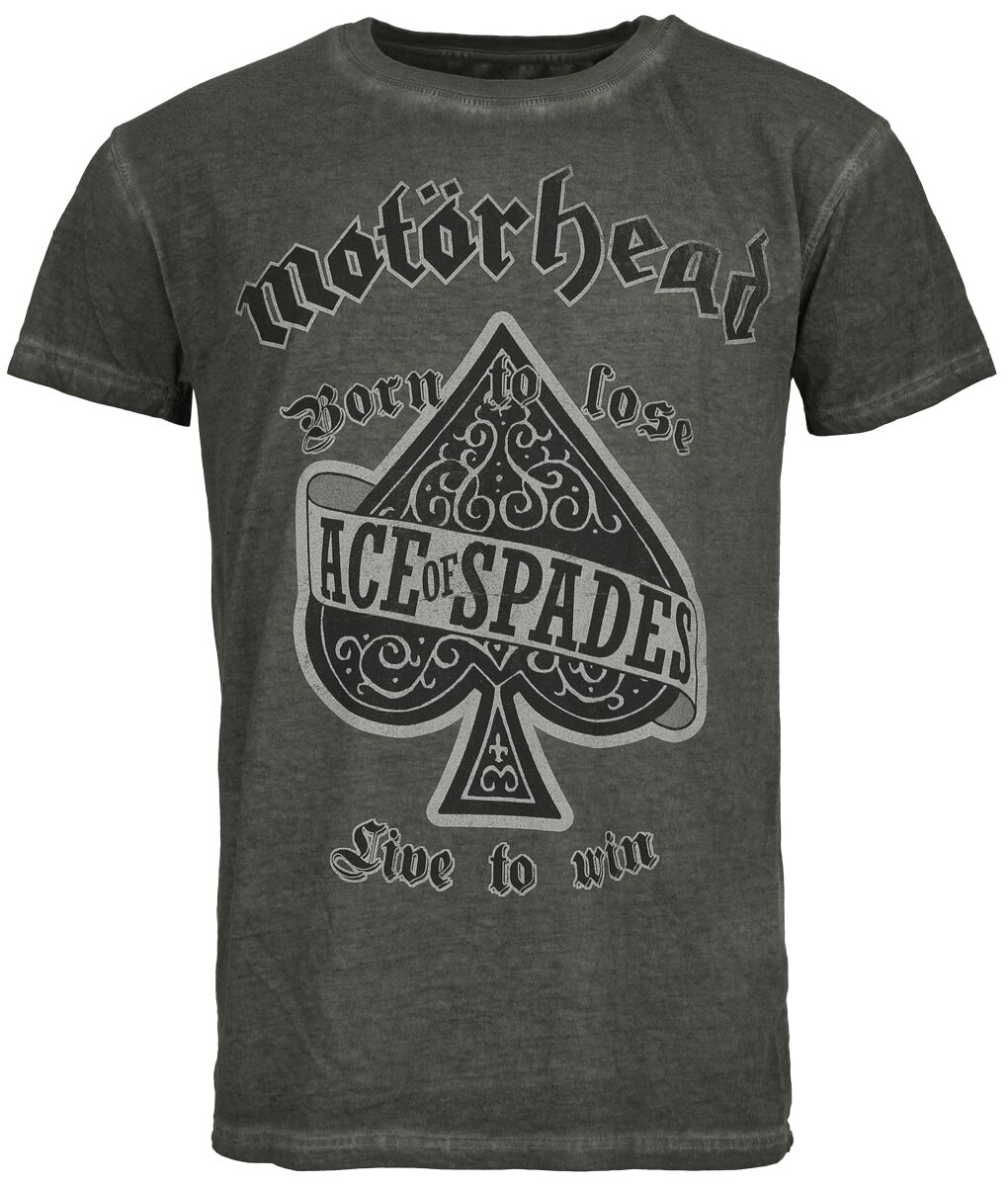 Vinyl Records London are on cloud nine, we are now spinning in this Motorhead Ace Of Spades T-Shirt available in sizes S, M, L, XL, XXL, 3XL, 4XL. Colour: anthracite, Pattern: plain, Wash: Oil wash, Main material: 100% cotton, Fit: Regular, Sleeve length: Short sleeves, Cut: Round neck, Collar style: Collarless, anthracite new T-Shirts Band Merchandise in stock L 100% cotton plain